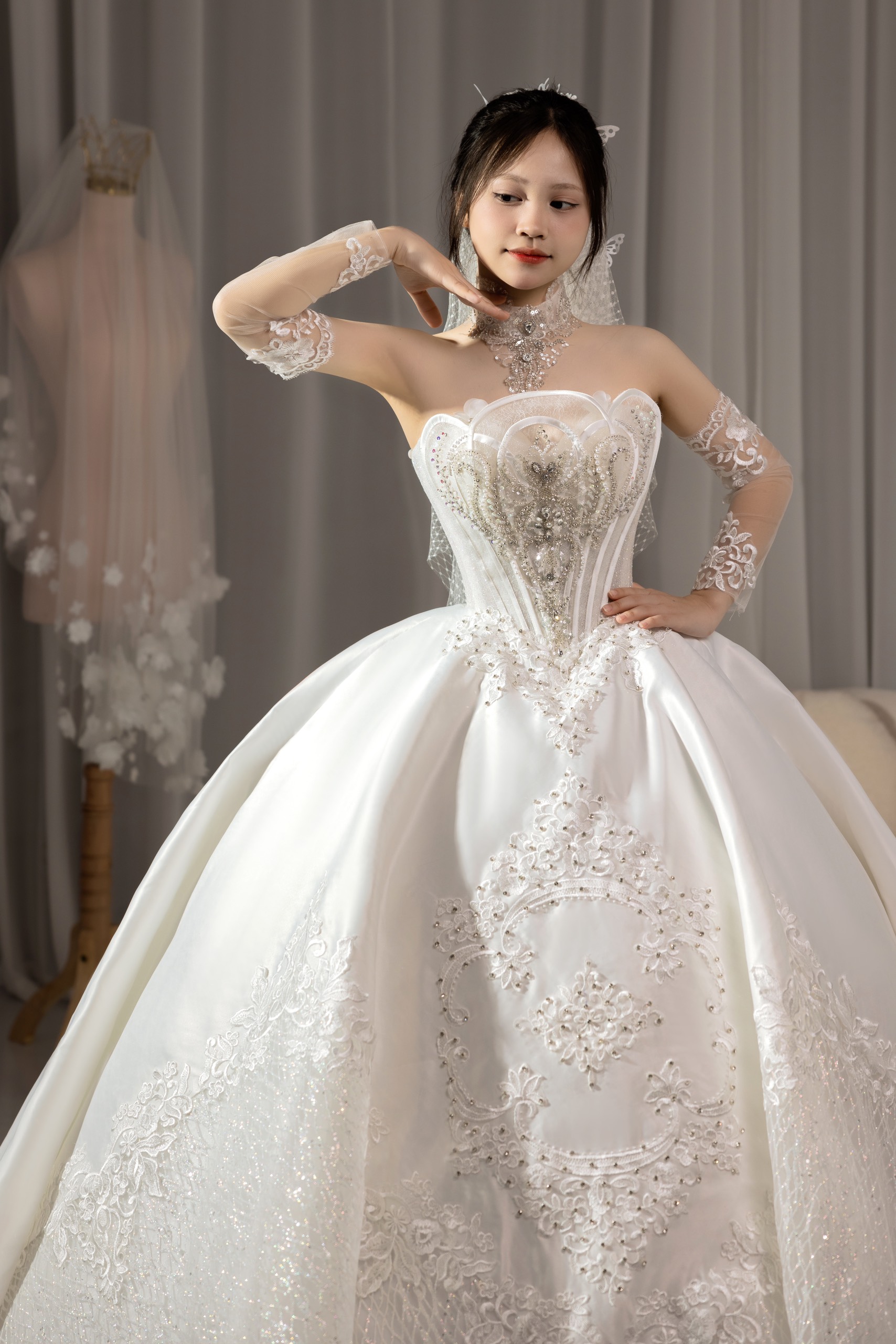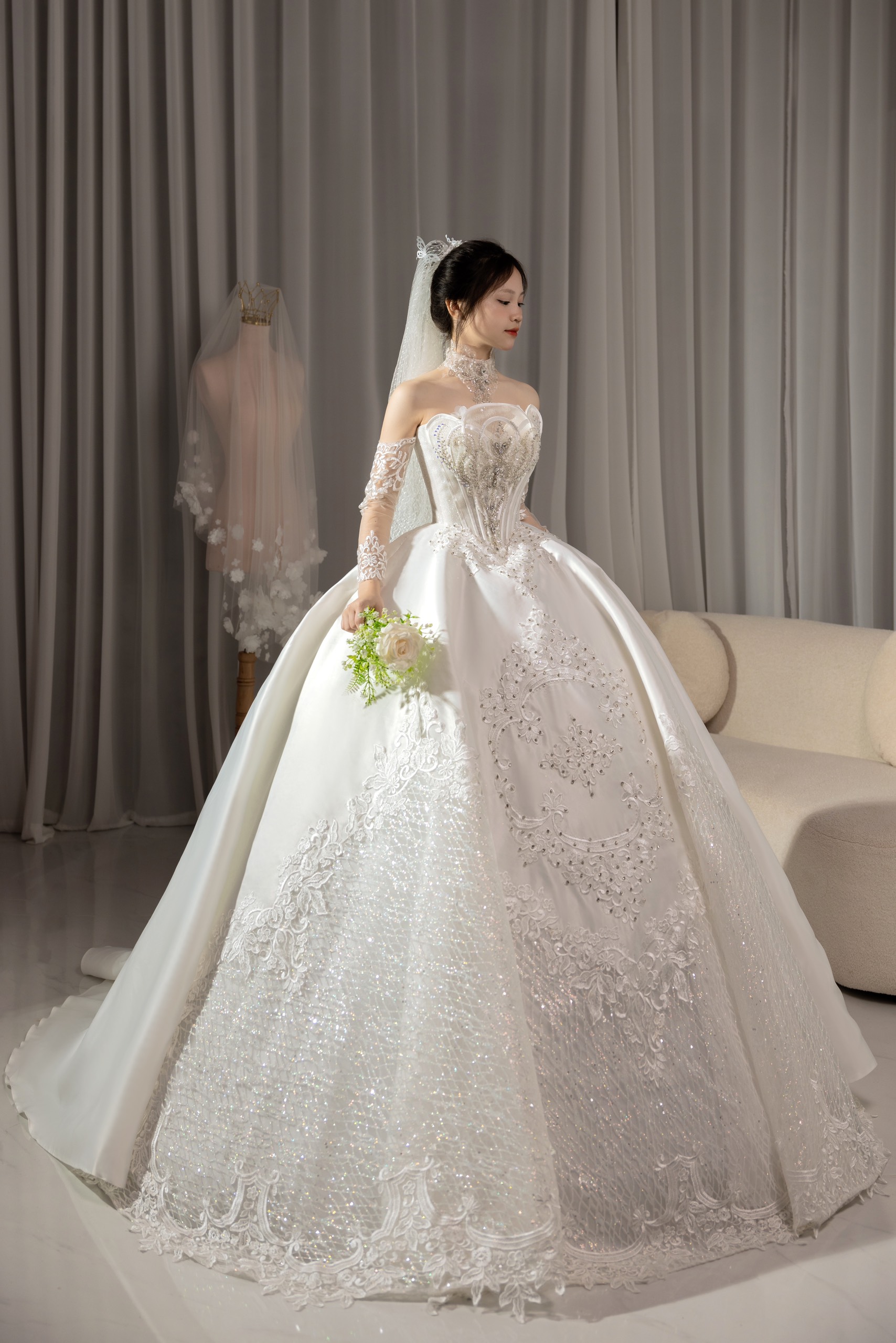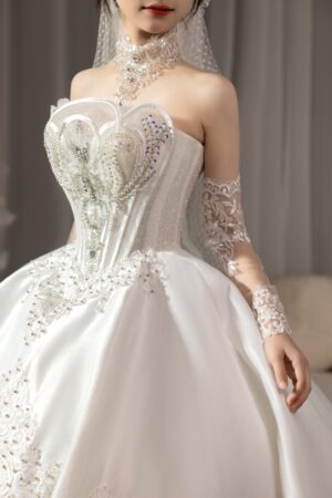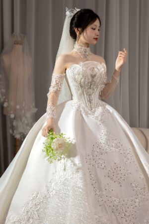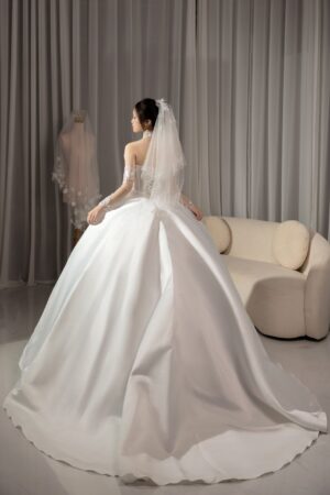 Váy cưới chất liệu cao cấp nhất, thiết kế thời thượng cho đến sự tỉ mỉ trong từng mẫu váy sẽ không làm cho dâu thất vọng.