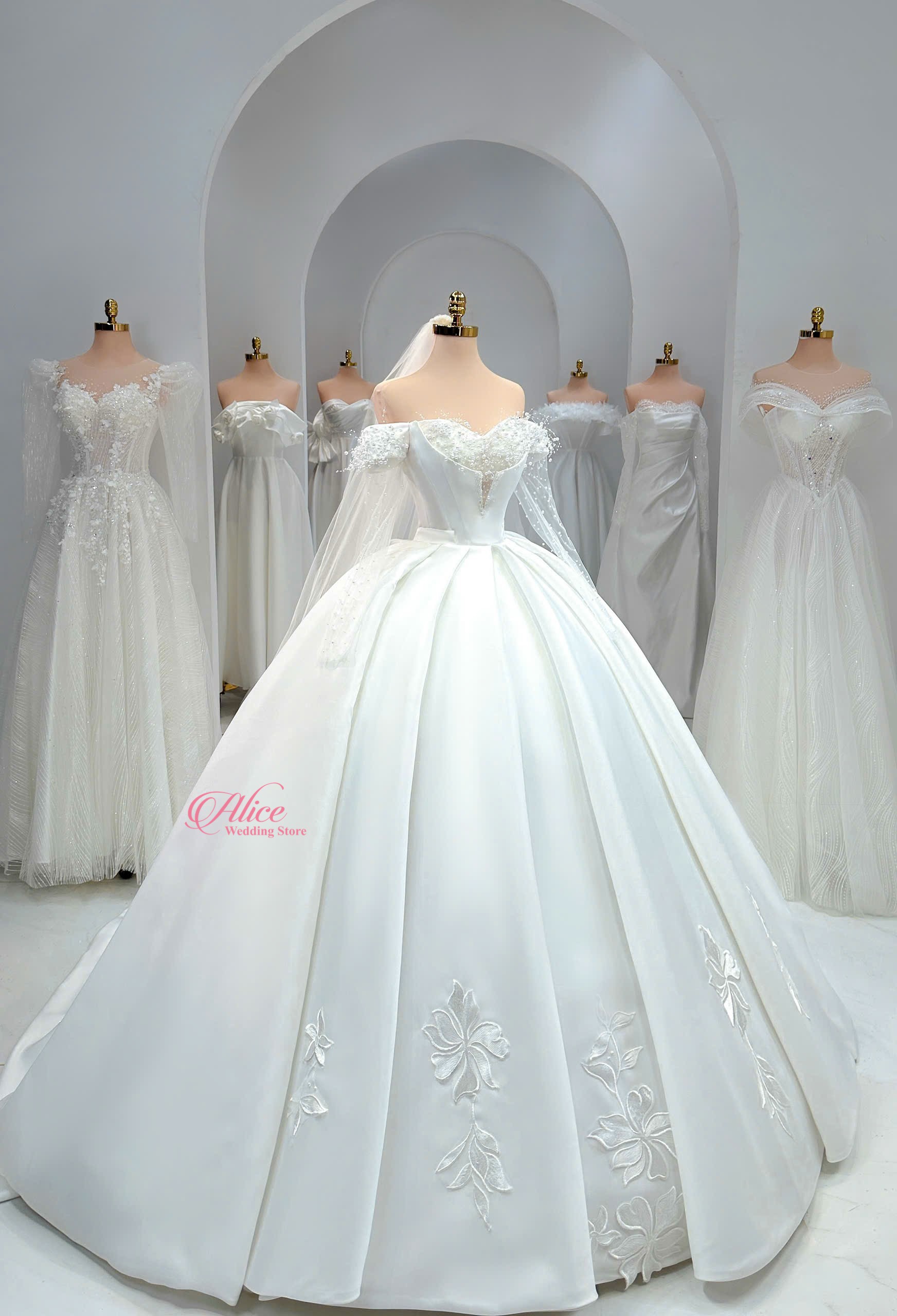 Váy cưới chất liệu cao cấp nhất, thiết kế thời thượng cho đến sự tỉ mỉ trong từng mẫu váy sẽ không làm cho dâu thất vọng.