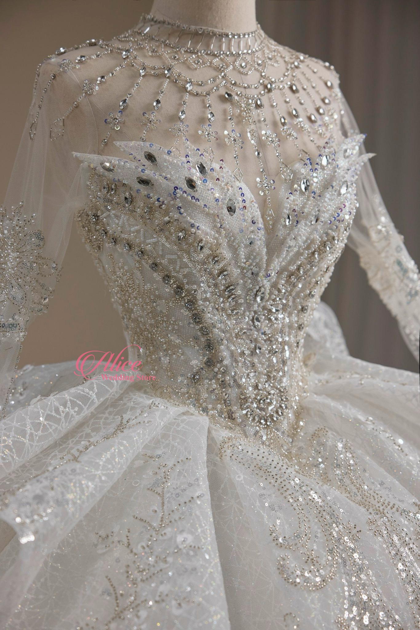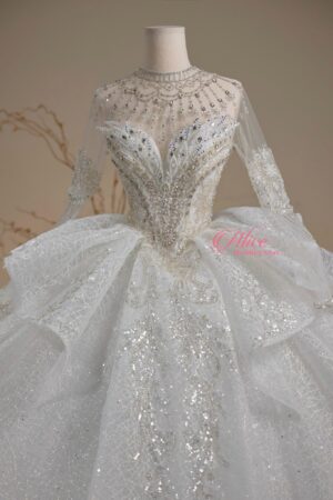 Váy cưới chất liệu cao cấp nhất, thiết kế thời thượng cho đến sự tỉ mỉ trong từng mẫu váy sẽ không làm cho dâu thất vọng.