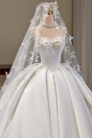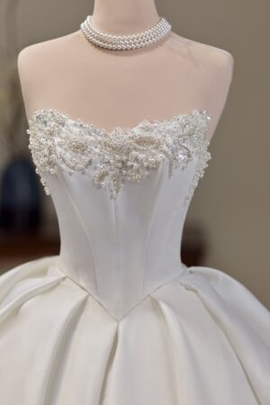 Váy cưới chất liệu cao cấp nhất, thiết kế thời thượng cho đến sự tỉ mỉ trong từng mẫu váy sẽ không làm cho dâu thất vọng.