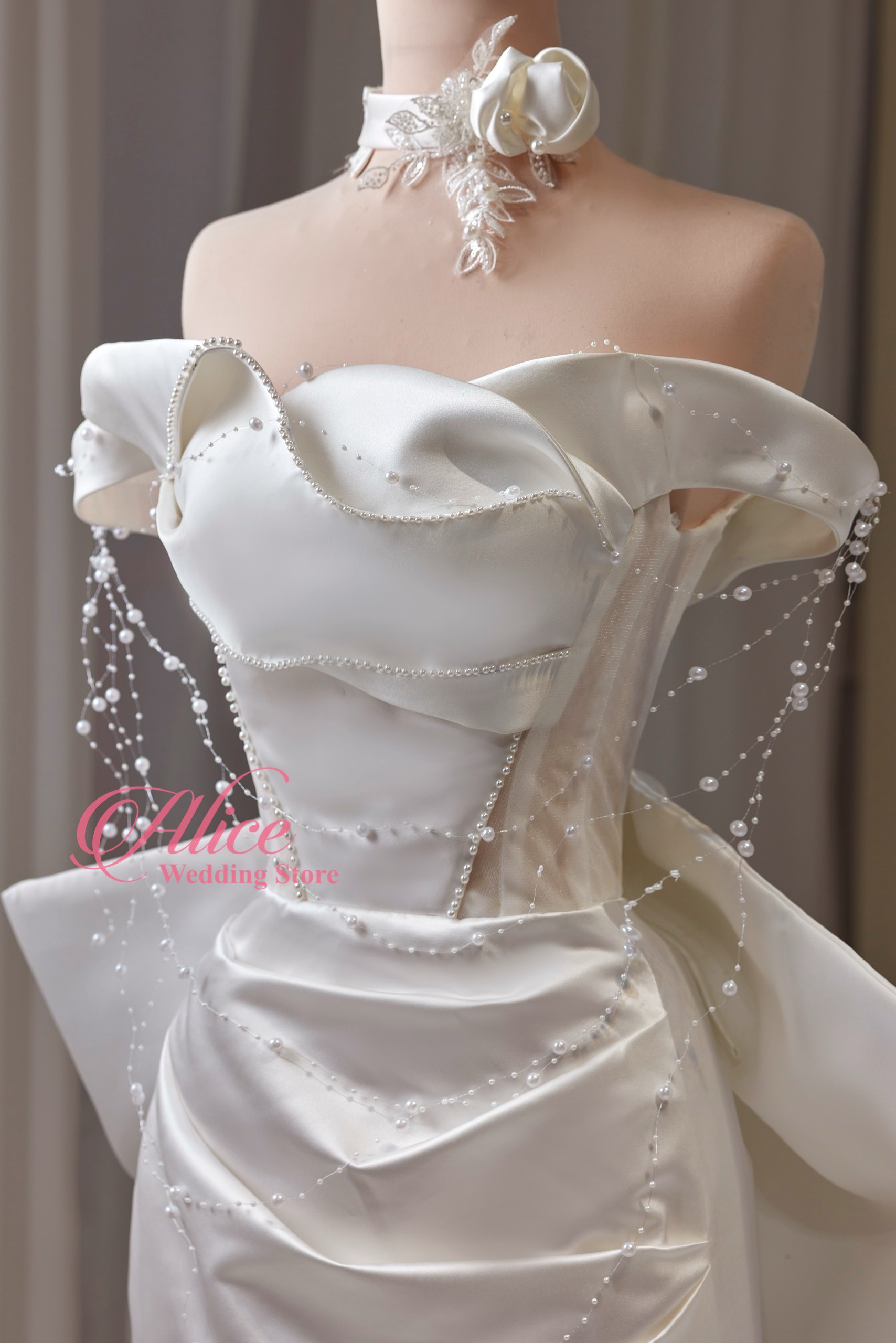 Váy cưới chất liệu cao cấp nhất, thiết kế thời thượng cho đến sự tỉ mỉ trong từng mẫu váy sẽ không làm cho dâu thất vọng.